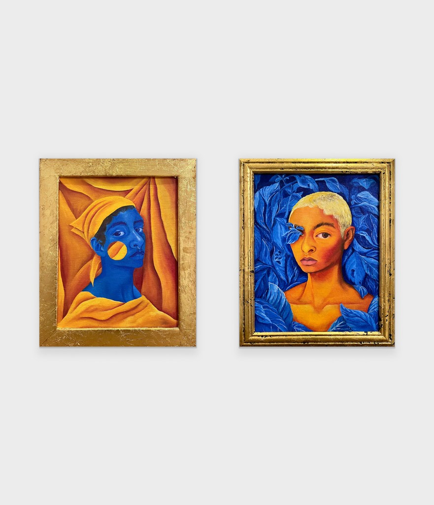 Charcoal, acrylic, ink on paper, and oil paint on canvas